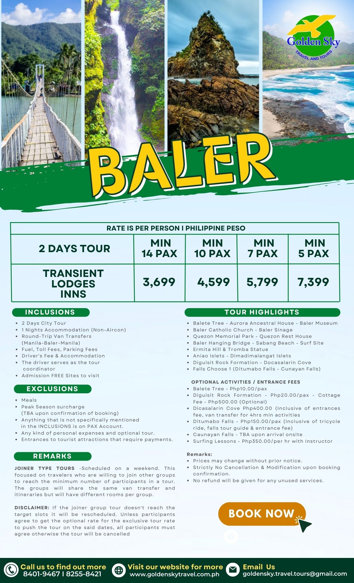 Baler is a town on the Philippine island of Luzon. In its center, Museo de Baler chronicles colonial history. On the coast, Cemento Beach is known for powerful surf, and Sabang Beach is lined with resorts. Nearby, Ermita Hill offers panoramic views. Inland, Baler Hanging Bridge crosses the mouth of the Tibag-Sabang River. To the east, the distinctive, angular Baler Lighthouse overlooks Dicasalarin Cove